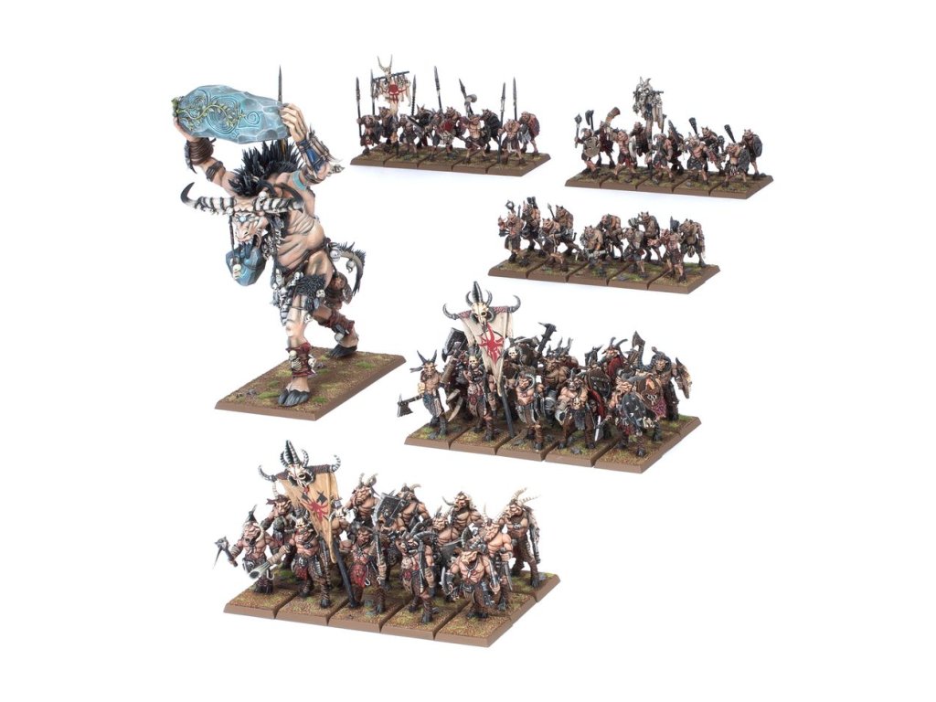 Disorganised raiding parties more than a disciplined army, the hosts of the Beastmen Brayherds are filled with slavering, savage creatures hell-bent on destruction and blood-spilling. These otherworldly monsters surge forward in vicious hordes armed with axes, crude spears, and shields.