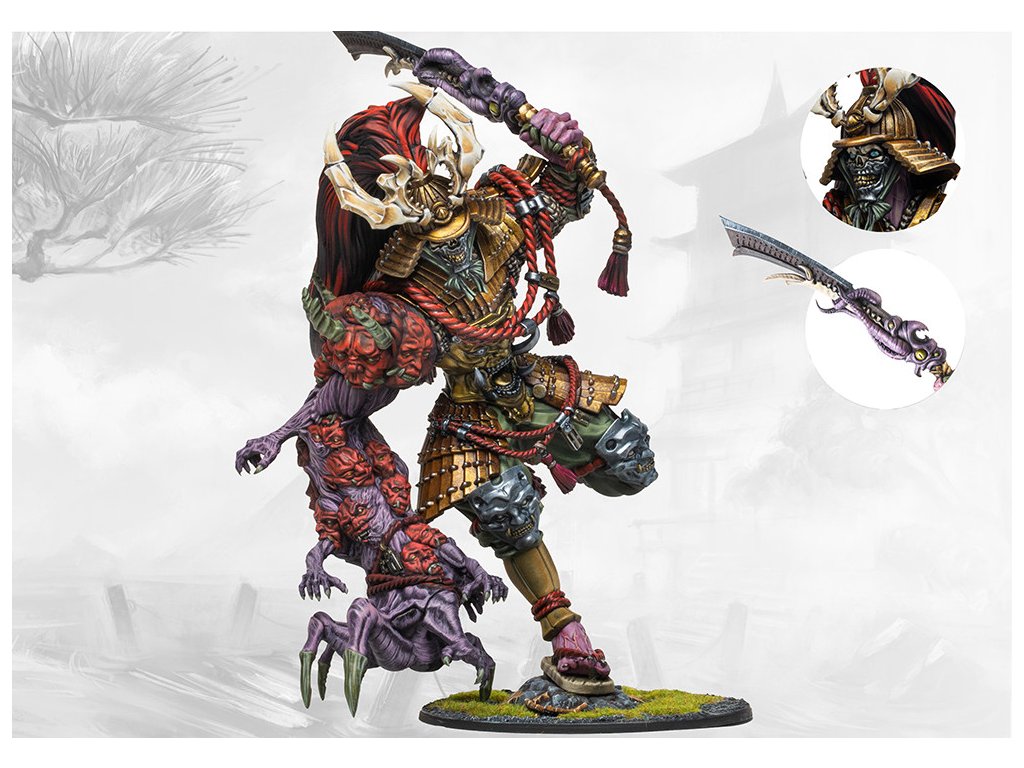 Dai Yokai are those currently walking the path of the Bushi and their martial prowess and expertise know no match. Masters of the blade and confident in their own power these enlightened paragons have been known to bring down fortress walls with a single perfect strike. Slicing through the mortal flesh of their foes is no challenge at all for these roving calamities. Greatest among the Yoroni are those who seek to emulate the path of Shuten-doji, the first of their path to walk and master the path of Enlightenment. Each of these brave souls must walk the path of the realms twice, once as a Bushi, seeking enlightenment from the noble ideas of their Path, and another as an Ayakashi, seeking enlightenment through self gratification. While none have yet managed to replicate this legendary achievement, many of the greatest among the Yoroni continue to try this lonely path. Their forms have swelled to accommodate the power their enlightenment affords them even as their corruption and impurities slowly seep from their bodies, further perfecting them as they walk the path towards ultimate enlightenment.